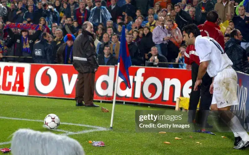 Mỗi khi Figo tiến đến thực hiện một quả phạt góc, những cơn mưa vật thể lạ trút xuống: bật lửa, đồng xu, chai nhựa, thậm chí là chai rượu whisky… Và rồi, một vật thể kỳ dị lăn tròn ra gần chấm phạt góc – một cái đầu lợn.