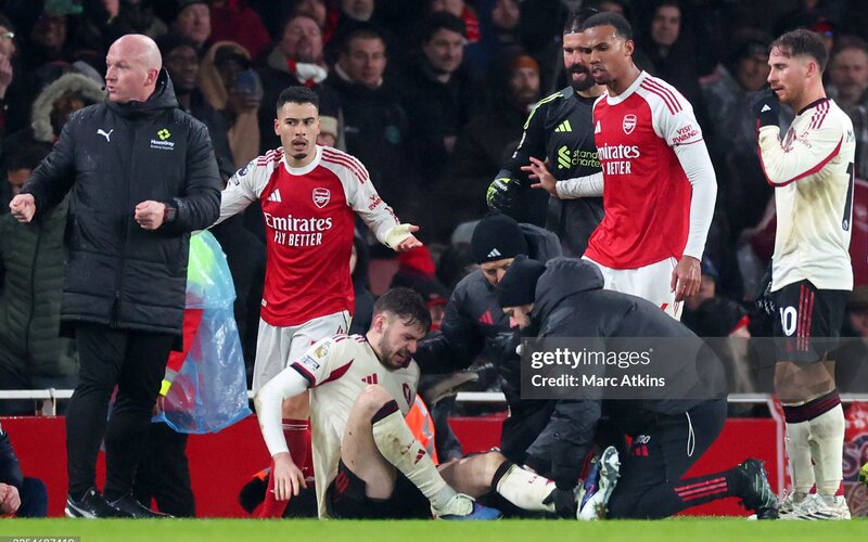 Những phút bù giờ tại Emirates thường là thời điểm của những cảm xúc vỡ òa, nhưng lần này, nó là sự vỡ òa của giận dữ. Khi đồng hồ điểm về những giây cuối cùng, Arsenal đang điên cuồng tìm kiếm bàn thắng. Trong một nỗ lực phá bóng, hậu vệ phải Conor Bradley của Liverpool đã ngã xuống đau đớn, tay ôm chặt lấy đầu gối ngay sát đường biên dọc. Thay vì chờ trọng tài cắt còi, Gabriel Martinelli – người đang bị ức chế tâm lý vì sự bế tắc của đội nhà – đã có những hành động khó chấp nhận.