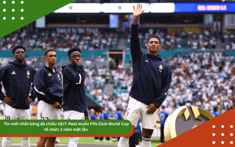 Bóng đá thế giới ngày 16/7 chứng kiến hàng loạt thông tin đáng chú ý từ các đội bóng lớn như Real Madrid, Chelsea, Leicester City hay ngôi sao trẻ Yamal. Từ những đề xuất cải tổ FIFA Club World Cup đến các thương vụ tài trợ kỷ lục và lùm xùm đời tư cầu thủ, làng túc cầu tiếp tục trở nên sôi động giữa mùa hè chuyển nhượng. Dưới đây là những tin tức nổi bật trong bản tin bóng đá chiều nay.