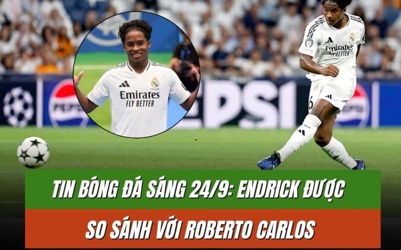 Tin bóng đá sáng 24/9 nổi bật với việc Endrick được các cầu thủ Real Madrid so sánh với huyền thoại Roberto Carlos nhờ khả năng sút bóng uy lực. Ngoài ra, UEFA đã thừa nhận sai lầm trọng tài trong trận Đức gặp Tây Ban Nha tại EURO 2024. Trận đấu giữa Newcastle và AFC Wimbledon bị hoãn do lũ lụt, và Real Madrid chính thức gia hạn hợp đồng với Ferland Mendy.