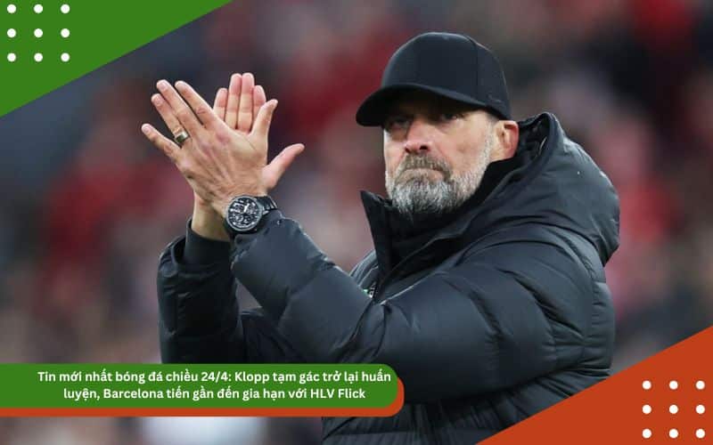 Chiều 24/4, làng túc cầu thế giới tiếp tục sôi động với hàng loạt tin tức xoay quanh tương lai của những chiến lược gia hàng đầu như Jurgen Klopp, Hansi Flick hay Xabi Alonso. Trong khi đó, tình hình chuyển nhượng và cuộc đua danh hiệu ở châu Âu cũng chứng kiến nhiều diễn biến đáng chú ý.